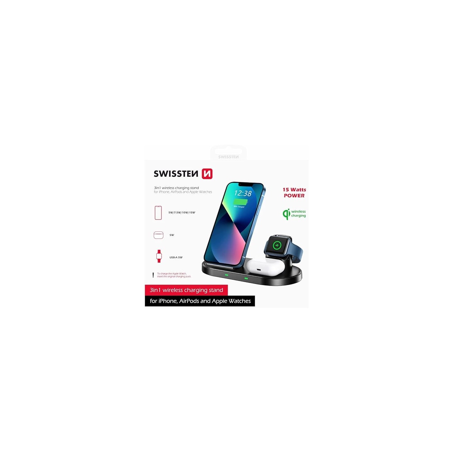 Puissance de 15w (Smartphone : 15w max, Watch : 5w ou AirPods : 5w)